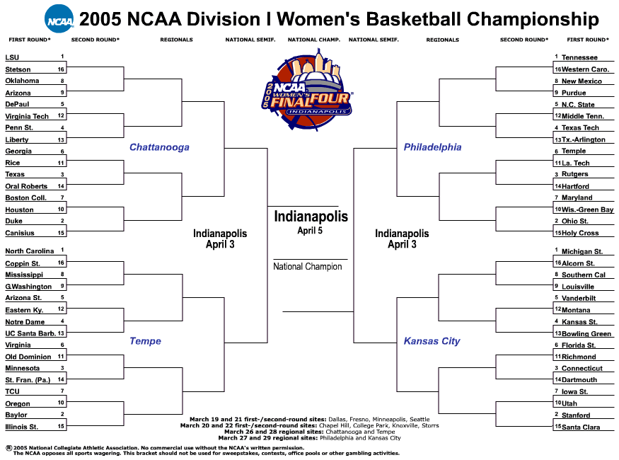 Jaz4stfguy 0 Posted March 16, 2005 Have any of you "hoopsters" finished filling out your brackets for " the big dance"? I haven't yet. I usually don't do too well, but, what the hay, its for fun. I don't gamble - I'd lose my shirt for sure! LOL! Do you have a fav team? Please note: this thread is meant for both the mens and womens tournaments. It just so happens that the Minnesota Gophers are in both tourneys! w00t! w00t! :P I don't know that the men will go too far as NC is in their bracket. But I have high hopes for the women. Maybe a final four....? It could happen. Share this post Link to post Share on other sites