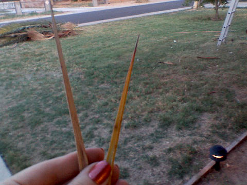 RikerChick 5 Posted July 19, 2008 Our palm tree getting trimmed today The spines off one of the fronds Share this post Link to post Share on other sites