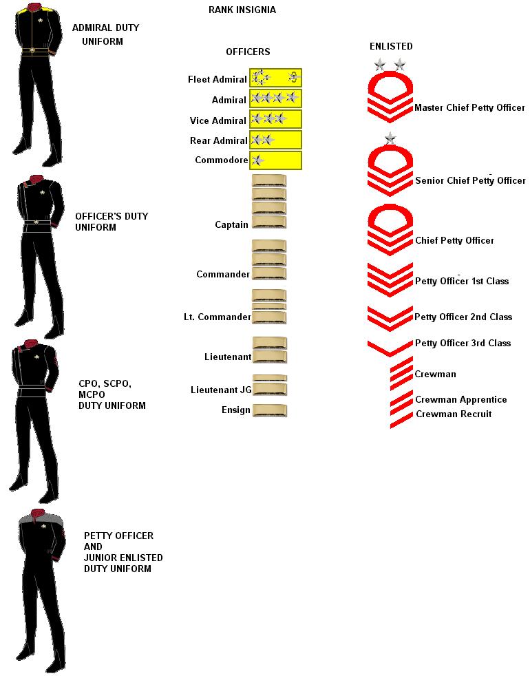 Krissy Phaserman 0 Posted March 29, 2006 Alright, since I can't edit my previous post again, I'll do this... In the Sim I am in, we have changed the uniforms entirely, and they are similar in issuance to US Navy uniforms. The designs aren't that similar, but the rank insignia is somewhat... » Click to show Spoiler - click again to hide... « Share this post Link to post Share on other sites
